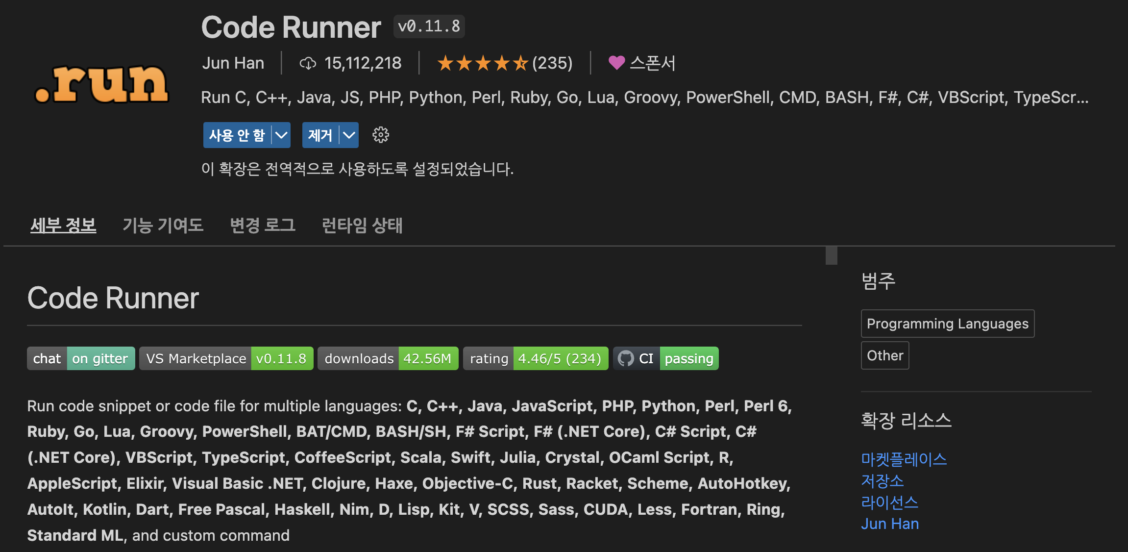 2. Code Runner VS Code Extension 설치